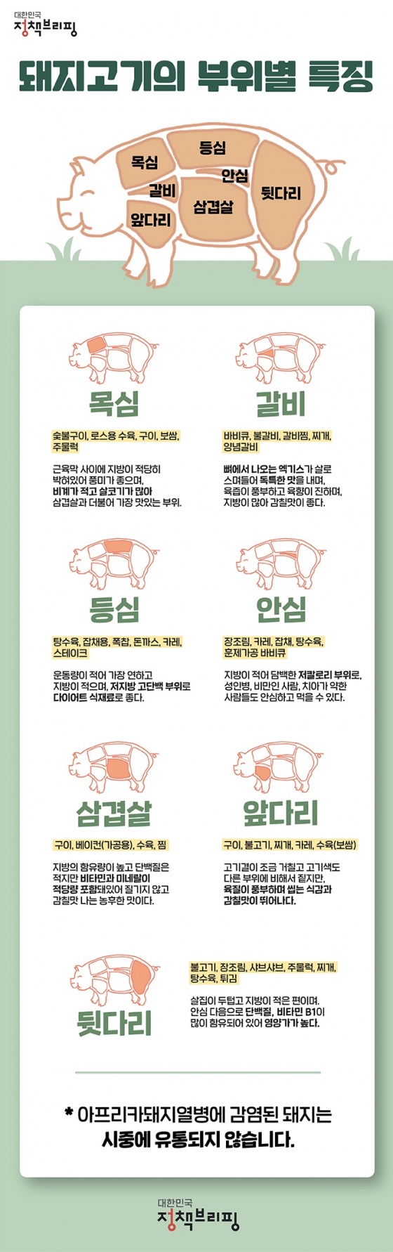 몸에 좋은 우리 국산 돼지고기 먹으며, 아프리카돼지열병으로 경제적 피해를 많이 입은 축산농가도 살리고, 건강도 챙겨보자.