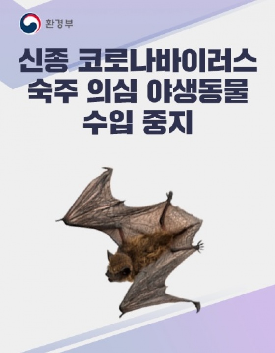환경부(장관 조명래)와 관세청(청장 노석환)은 신종 코로나바이러스의 국내 유입 가능성을 차단하기 위해 해당 바이러스 전파 가능성이 있는 중국 야생동물의 국내 반입을 잠정적으로 막는다고 밝혔다.