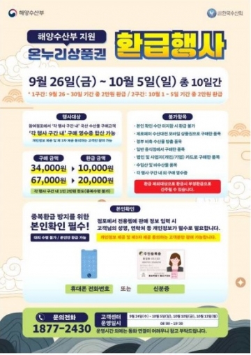 전재수 해양수산부 장관은 “추석 성수품 물가안정과 지역경제의 활력을 높이기 위해 역대 최대 규모의 온누리상품권 환급행사를 준비했다”라며, “이번 행사가 추석 명절을 준비하는 국민의 장바구니 부담 완화와 더불어 전국 수산업 종사자, 전통시장 소상공인분들께도 많은 도움이 될 수 있도록 지원을 아끼지 않겠다”라고 말했다.