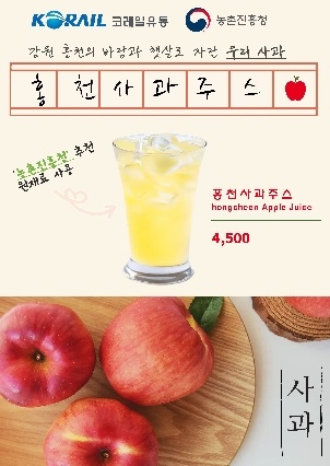 ‘홍천 사과주스’ 코레일유통 커피전문점 판매 중