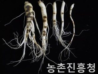 인삼은 이어짓기(연작) 피해가 큰 작물로, 특히 뿌리썩음병(사진)이 발생하면 생산량이 줄고 품질이 떨어지는 등 농가 손실이 크다.